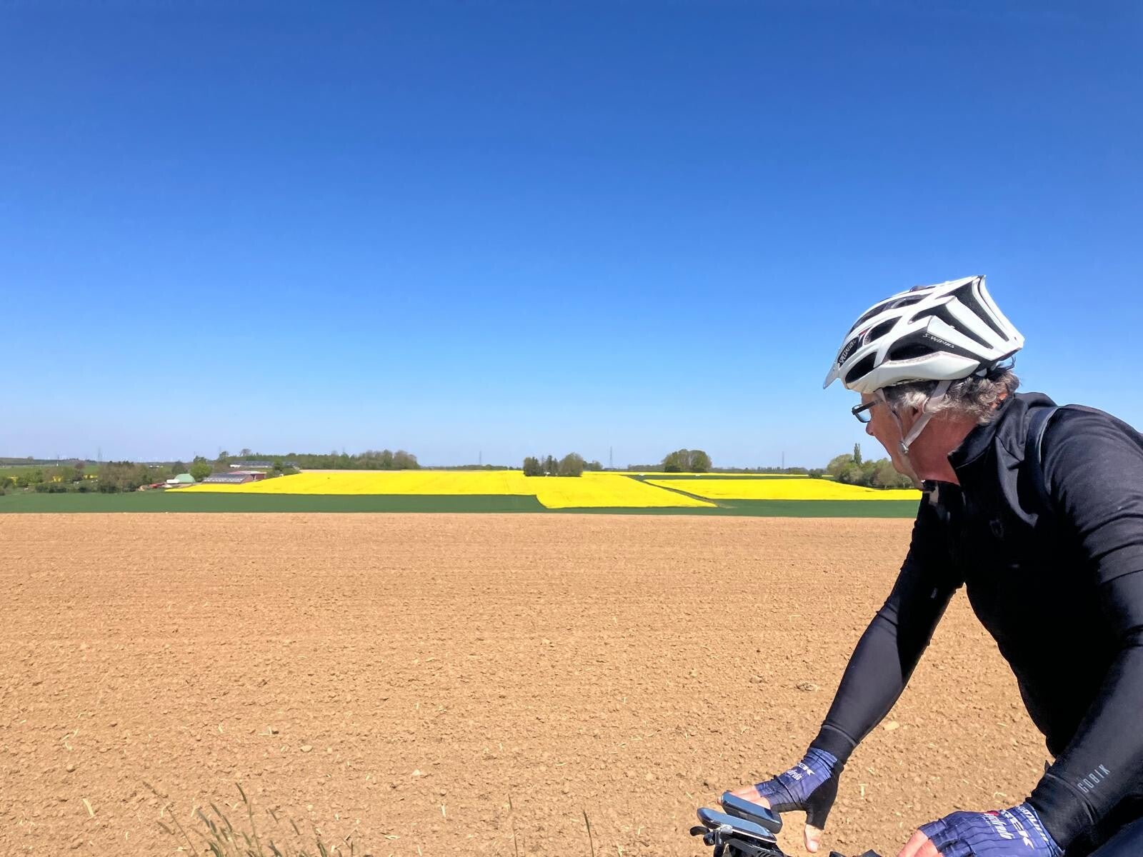 Deze namiddag staat er een fietstocht gepland richting Bomal en Durbuy. De zon schijnt, maar er waait een heel frisse bries uit het noordoosten, vooral op de hoogvlaktes ten noorden van Durbuy is die heel sterk voelbaar.